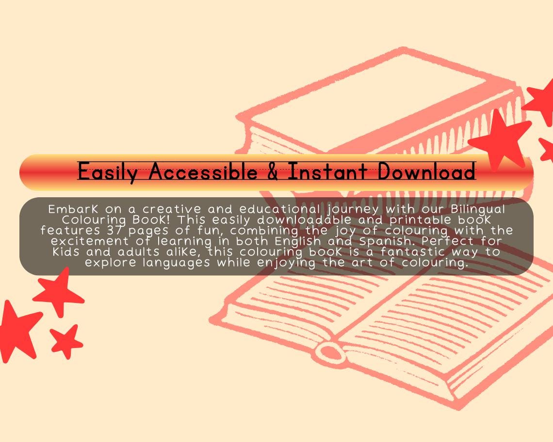 Embark on a creative and educational journey with our Bilingual Colouring Book! This easily downloadable and printable book features 37 pages of fun, combining the joy of colouring with the excitement of learning in both English and Spanish. Perfect for kids and adults alike, this colouring book is a fantastic way to explore languages while enjoying the art of colouring.